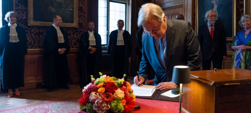 UN Secretary-General Antonio Guterres signs a book dedicated to the 80th anniversary of the International Court of Justice in The Hague. 80th anniversary of the International Court of Justice: “the power of law” instead of the “law of force” International Law